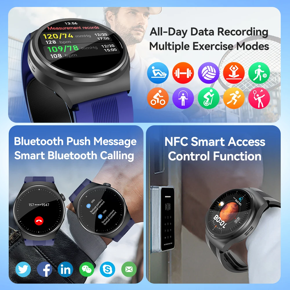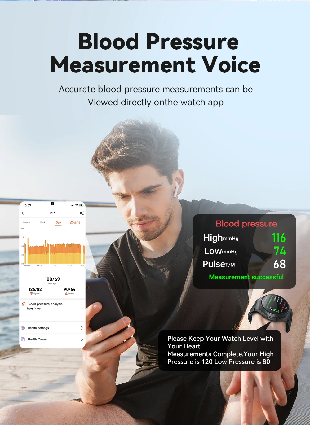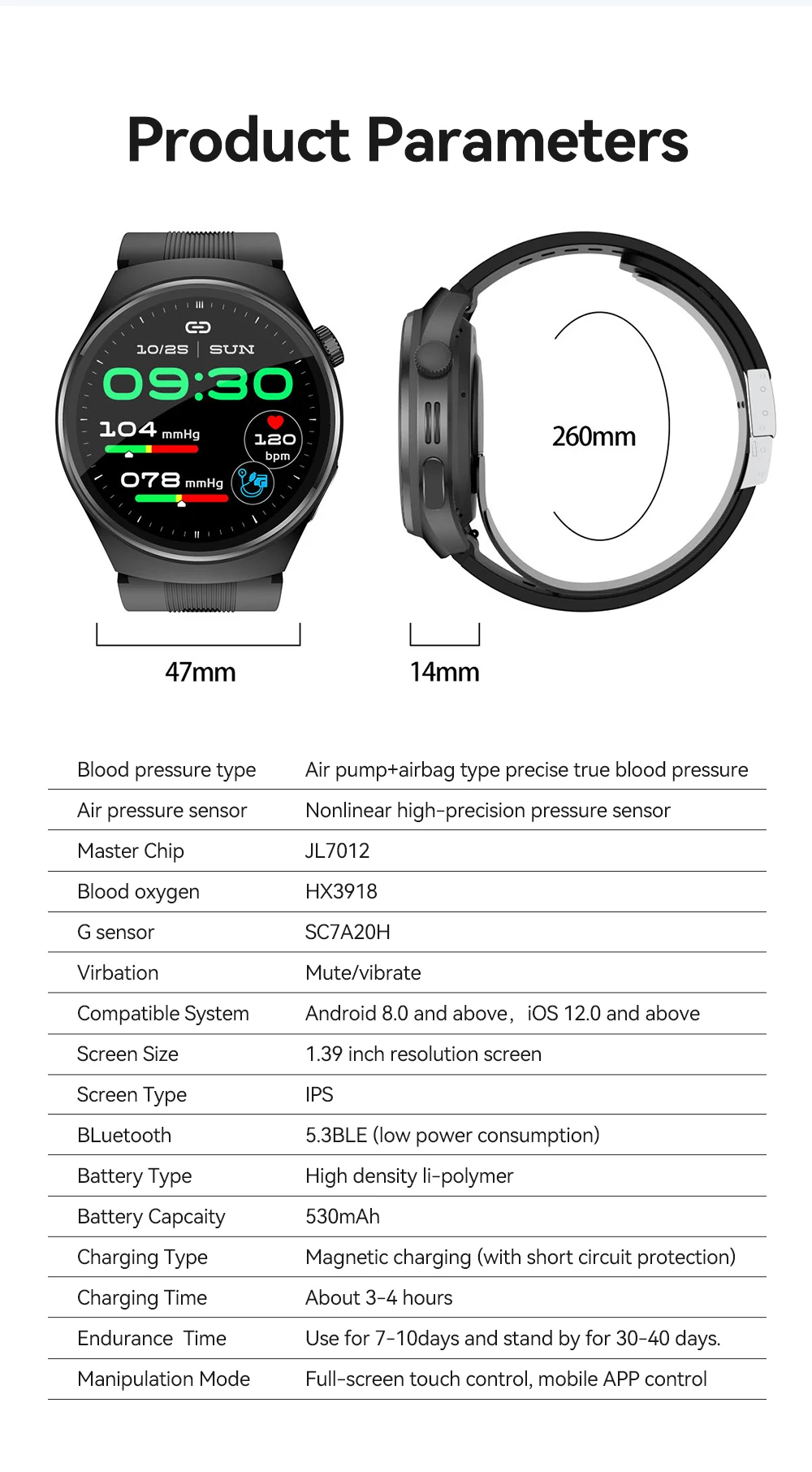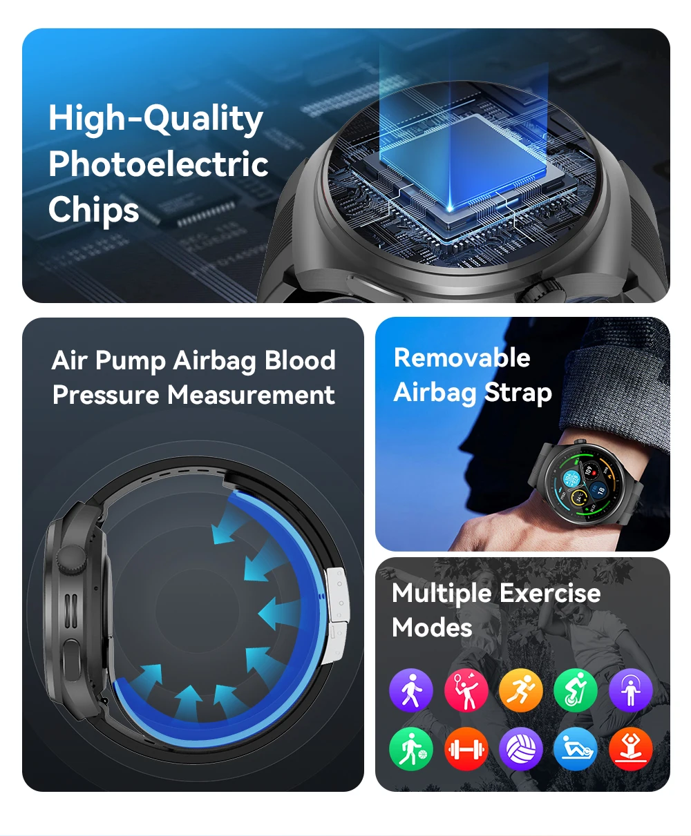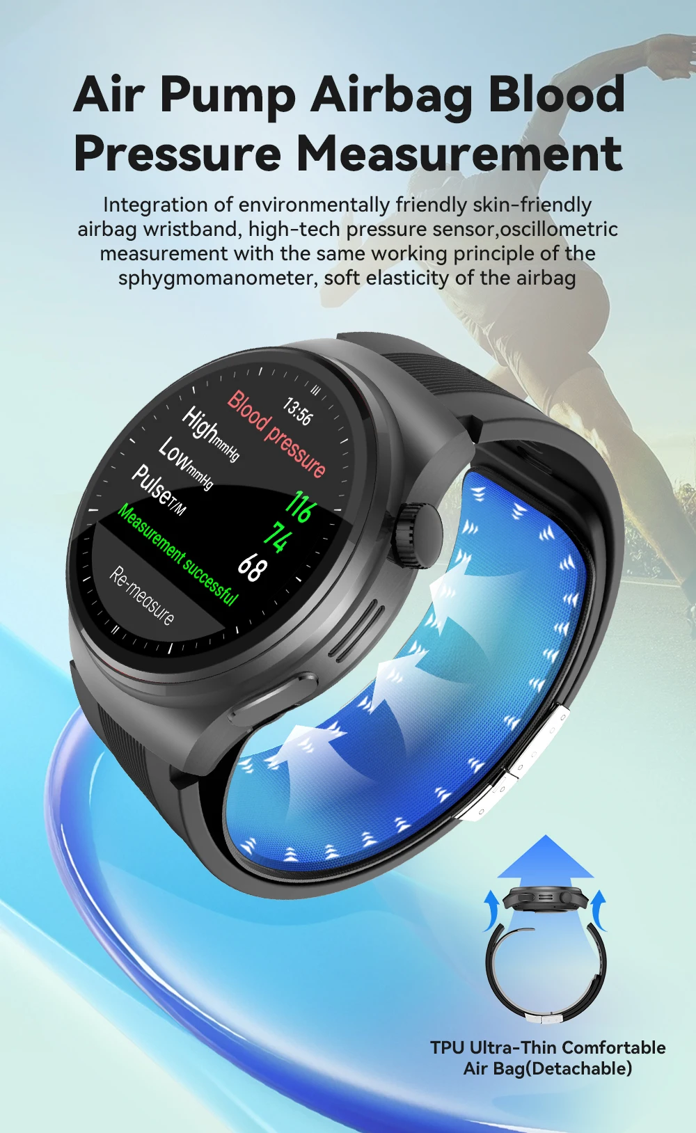 Air pump+air bag type true blood pressure accurate test, TPU ultra-thin comfortable air bag (detachable), blood pressure voice broadcast, blood pressure posture judgment, Bluetooth call,