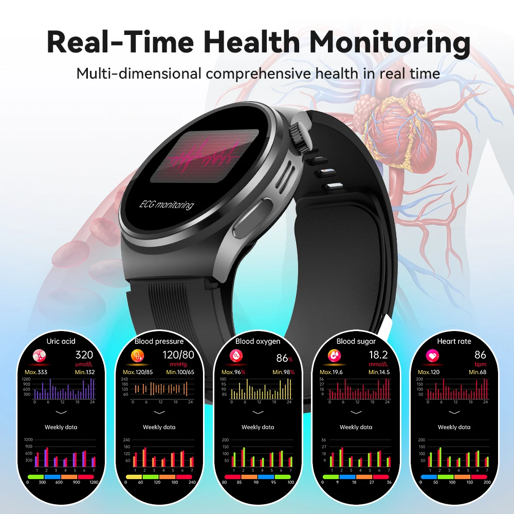 blood sugar monitoring, uric acid monitoring, blood lipid monitoring, body temperature monitoring, blood oxygen monitoring, respiratory rate, sleep monitoring,