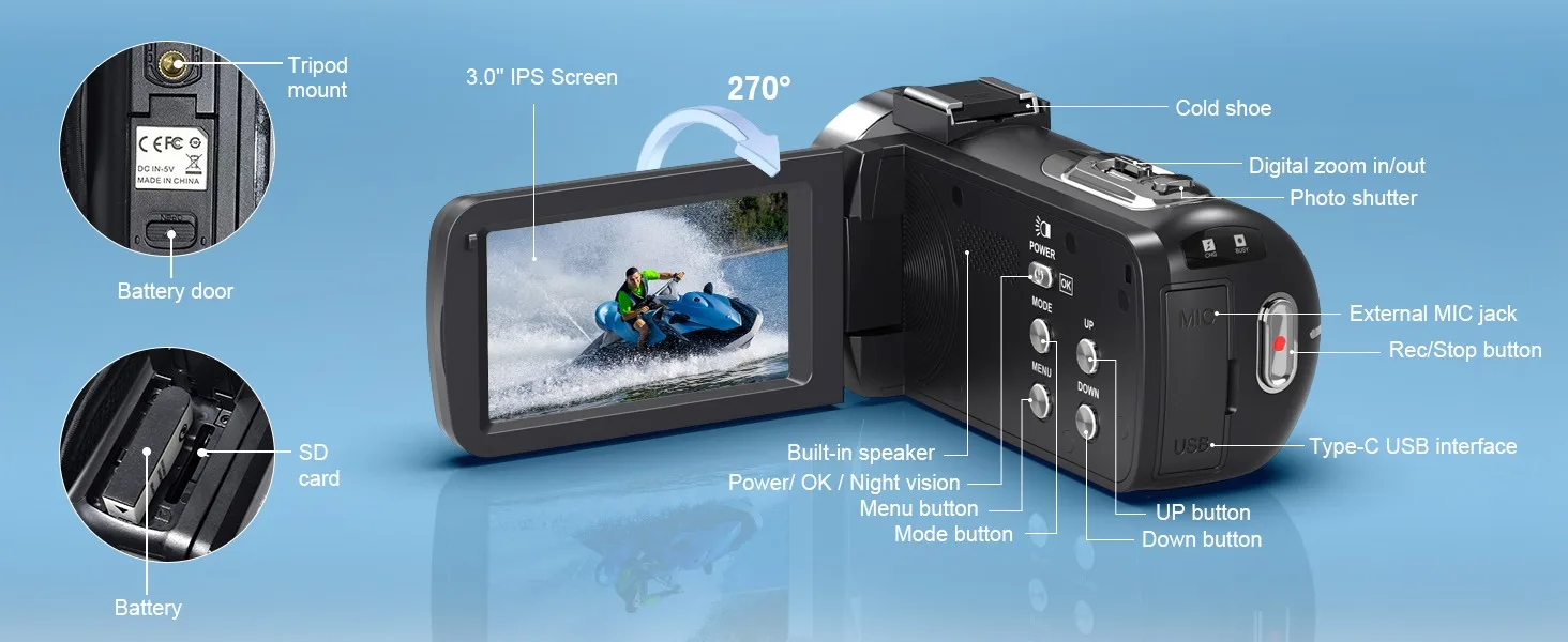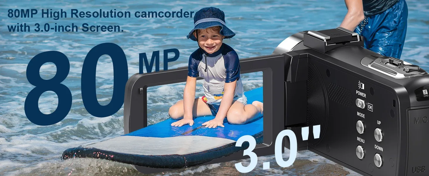 📹【UHD 4K 80MP Camera】Capture stunning detail with up to UHD 4K (30FPS) video resolution and 80MP image resolution. The 18X digital zoom lets you bring distant subjects closer, while the 270° rotating 3.0-inch IPS HD screen offers flexible shooting angles for vlogging, travel, or daily recording.Therefore, this 4K vlogging video camera is undoubtedly the most popular gift for teenagers, beginners, and those wanting to share videos on YouTube