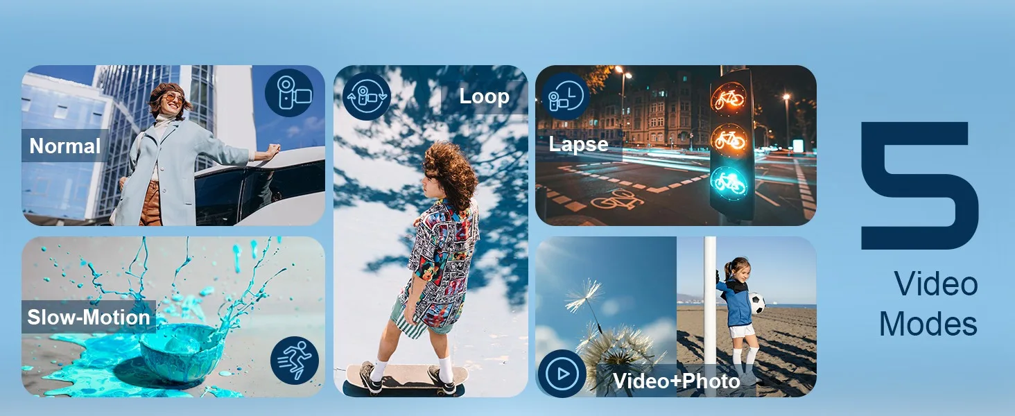 📹Versatile Shooting Features】Includes face detection, time-lapse, burst mode, smile capture, filter effects, beauty mode, and more. Supports recording while charging, external microphone input (not included), and remote control operation for convenience and creativity.