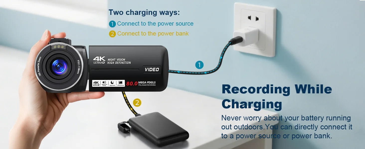 📹【Lightweight & Portable Design】Compact and easy to carry, ideal for beginners, teens, or vloggers. Compatible with up to 128GB TF cards (not included). Perfect for YouTube,travel, or family recording.