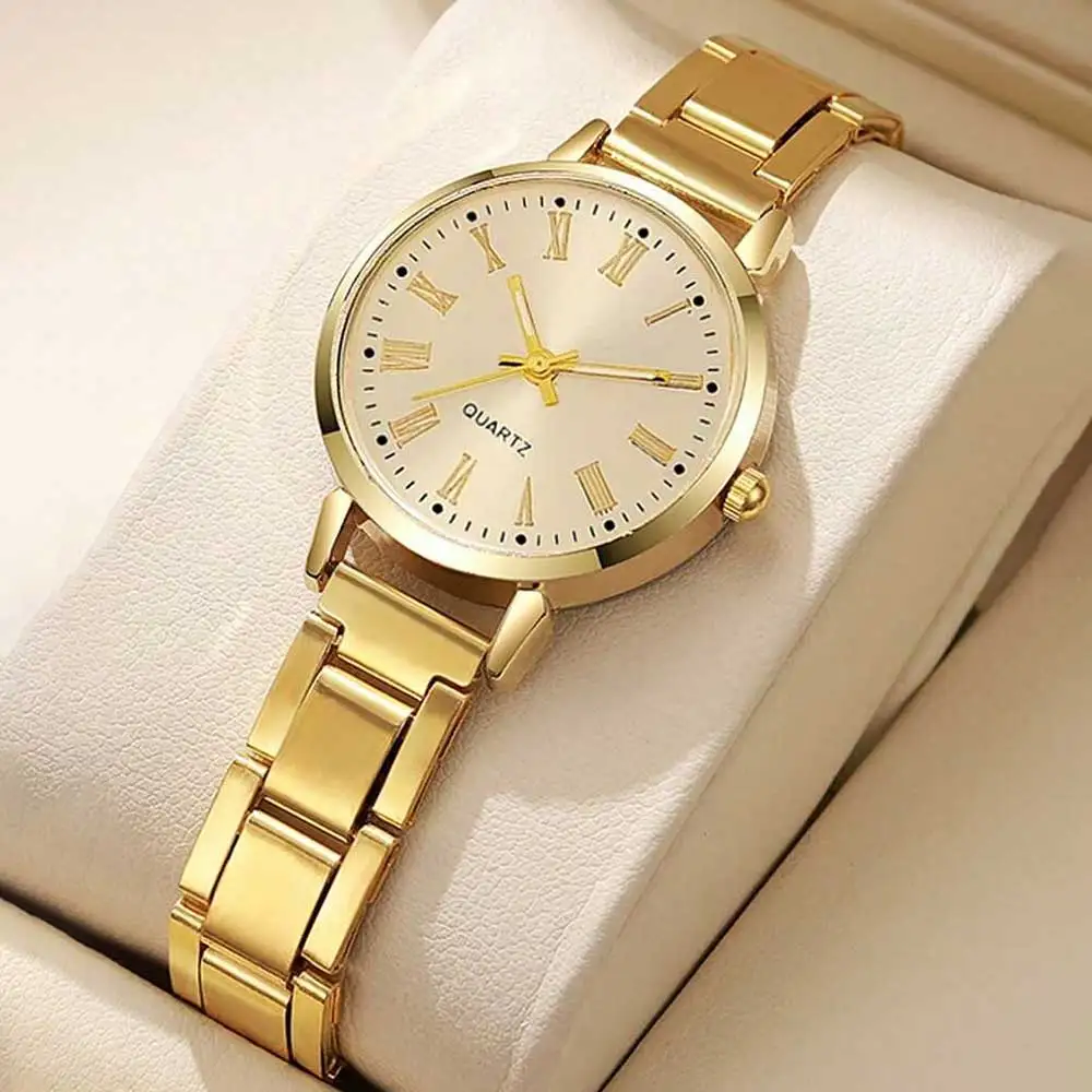 4PCS Fashion Women’s Watch Set Trendy Luxury Simple Roman Numerals Scale Round Dial Quartz Watch Bracelet Set Perfect Gift