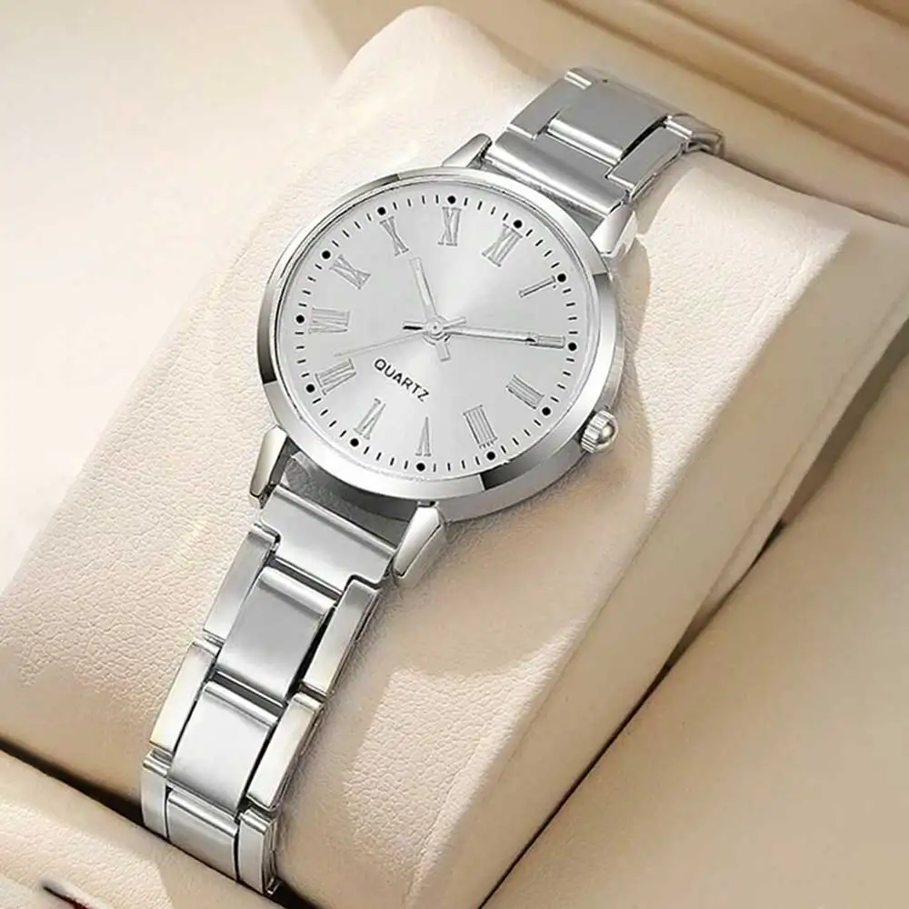 Be the first to review “4PCS Fashion Women’s Watch Set Trendy Luxury Simple Roman Numerals Scale Round Dial Quartz Watch Bracelet Set Perfect Gift”