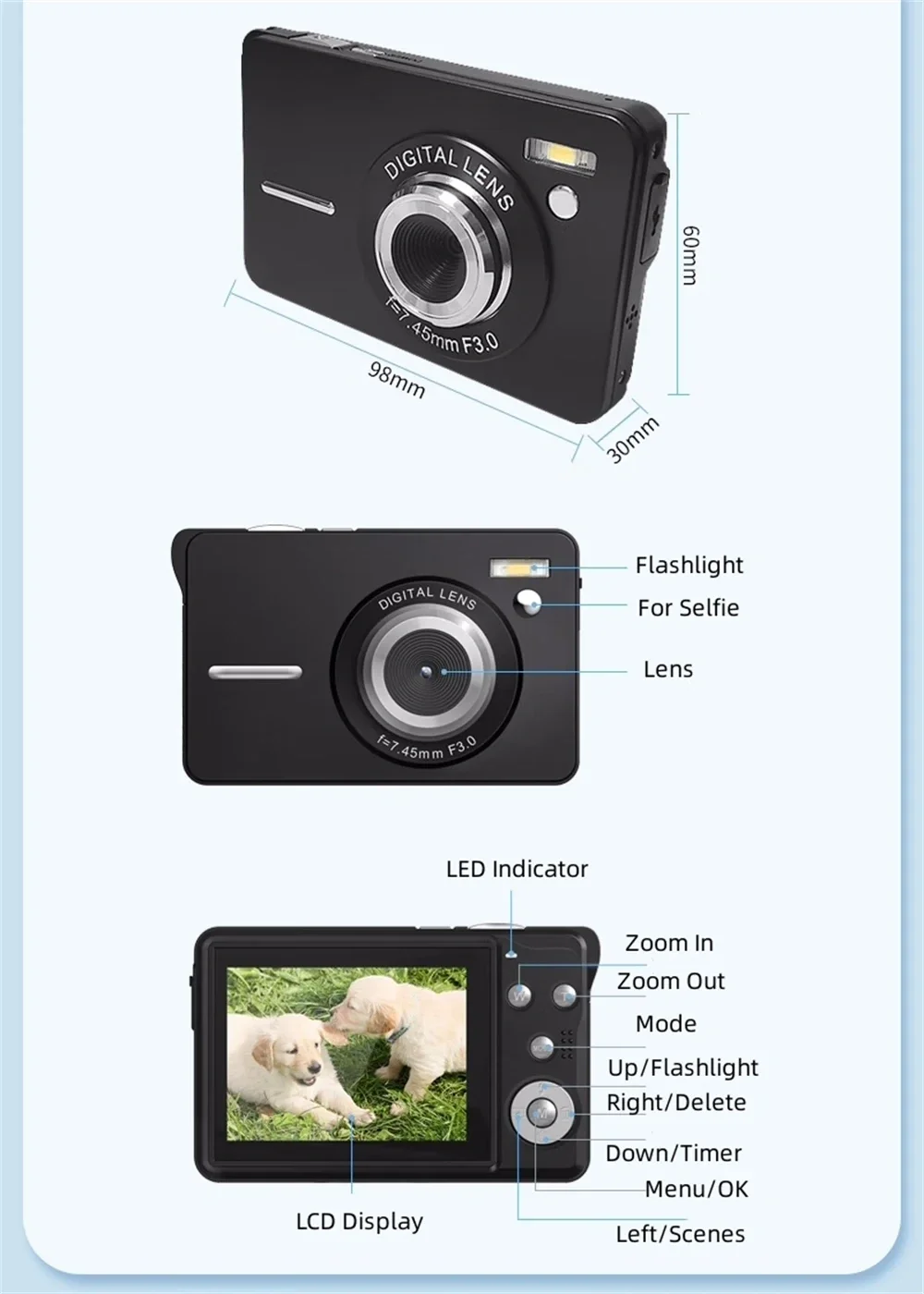 LED Fill Light: Support. Auto Off: 3 minutes/5 minutes/ OFF