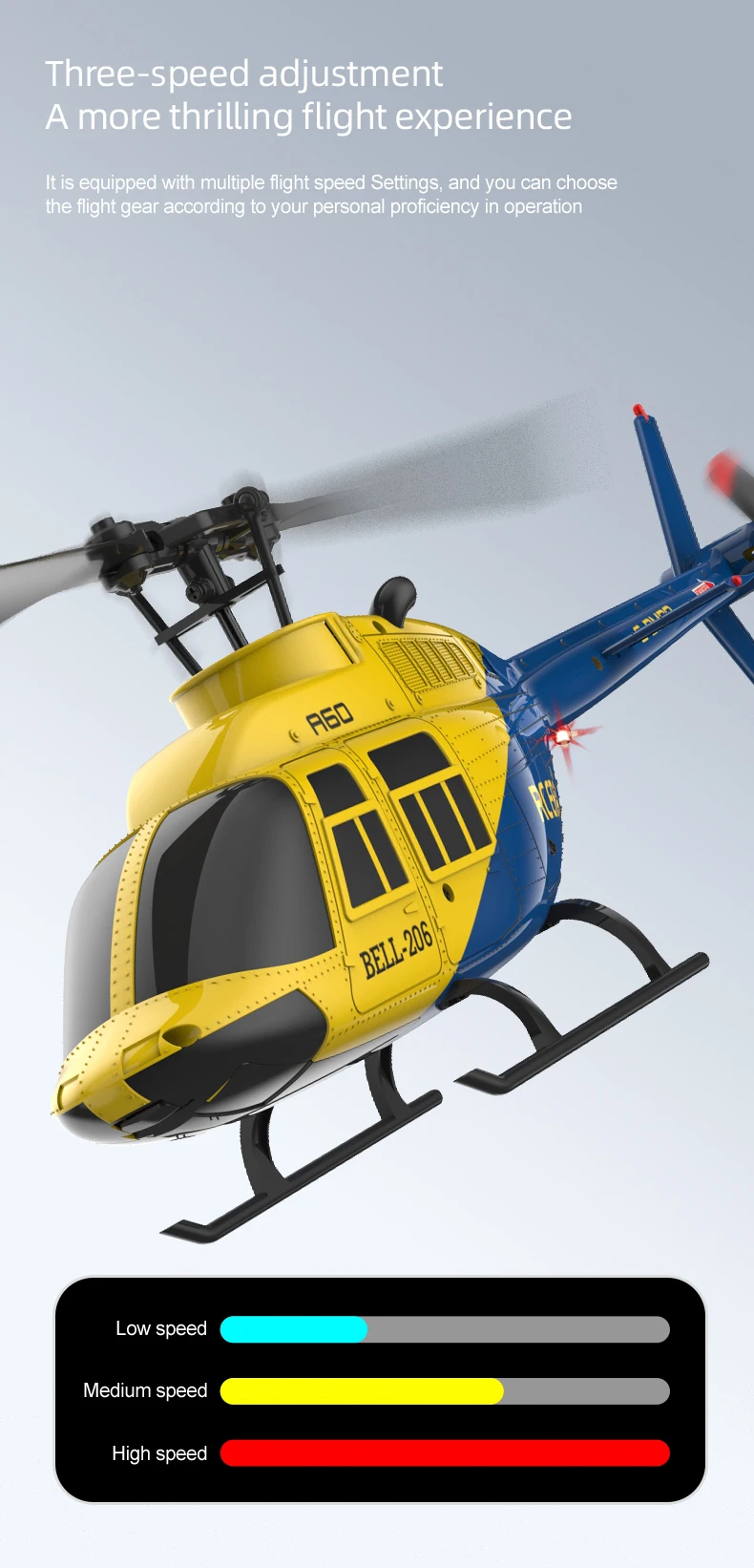 It adopts a single-propeller and aileronless design, a 6-axis electronic gyroscope is stabilized, and a barometer is added to set the height, making the flight more stable and easier to maneuver! Long battery life! Impact resistant! The shape is reduced in equal proportion to the real machine, and it can not only control the flight but also be used as an ornament. The A60 can last up to about 12 minutes! (Optional optical flow positioning)