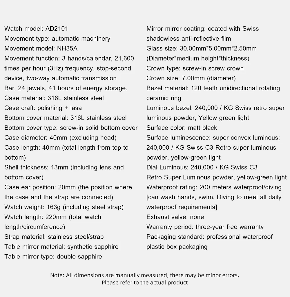 Waterproof level: 200 meters waterproof/diving [can wash hands, swim, dive, meet all daily waterproof requirements]