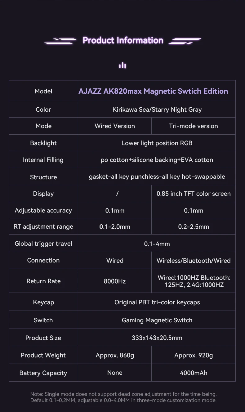 Be the first to review “AJAZZ AK820 MAX HE Hall Effect Magnetic Gaming Keyboard, Adjustable Actuation, 8KHz Polling Rate, Gasket,Wired Keyboard”