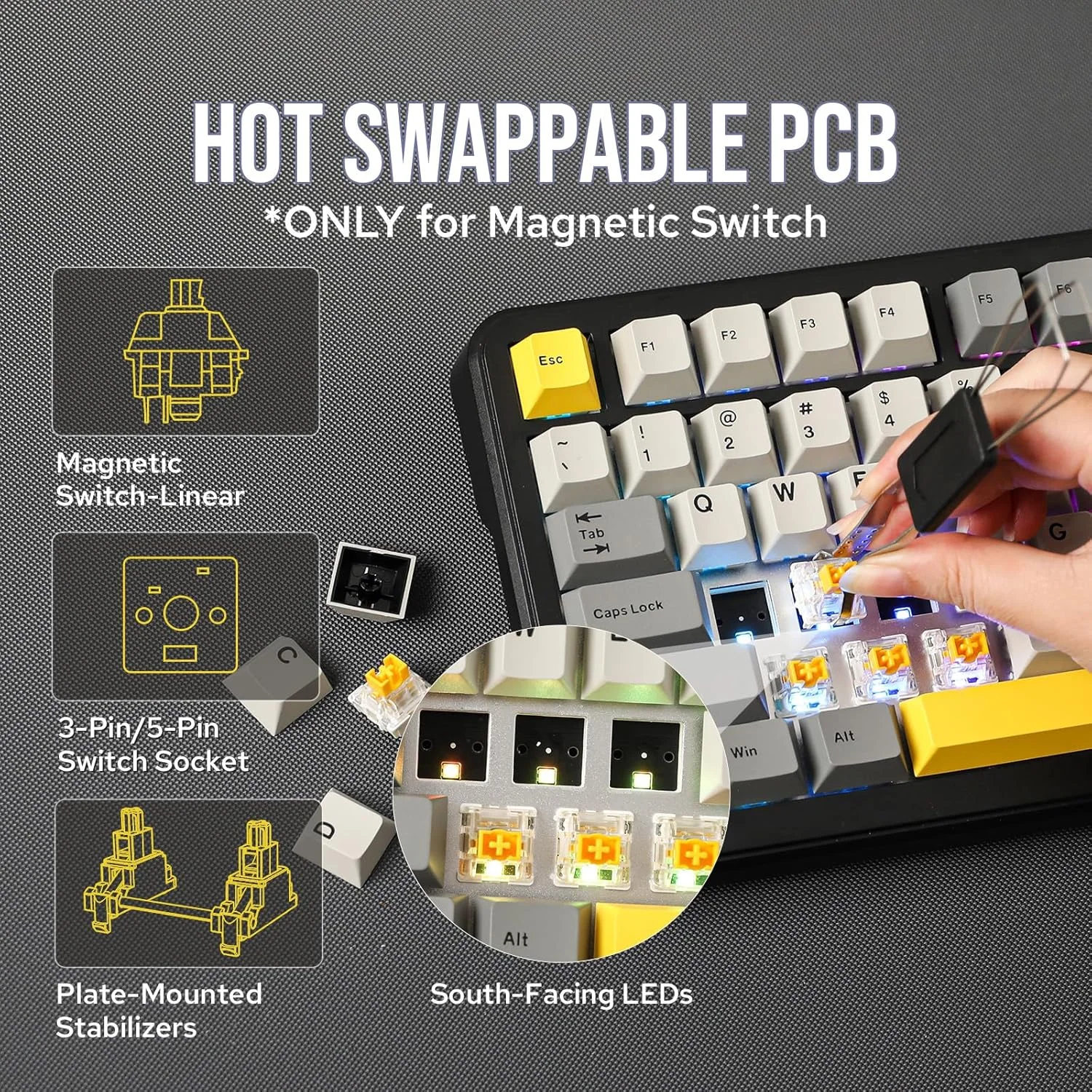 AJAZZ AK820 MAX HE Hall Effect Magnetic Gaming Keyboard, Adjustable Actuation, 8KHz Polling Rate, Gasket,Wired Keyboard