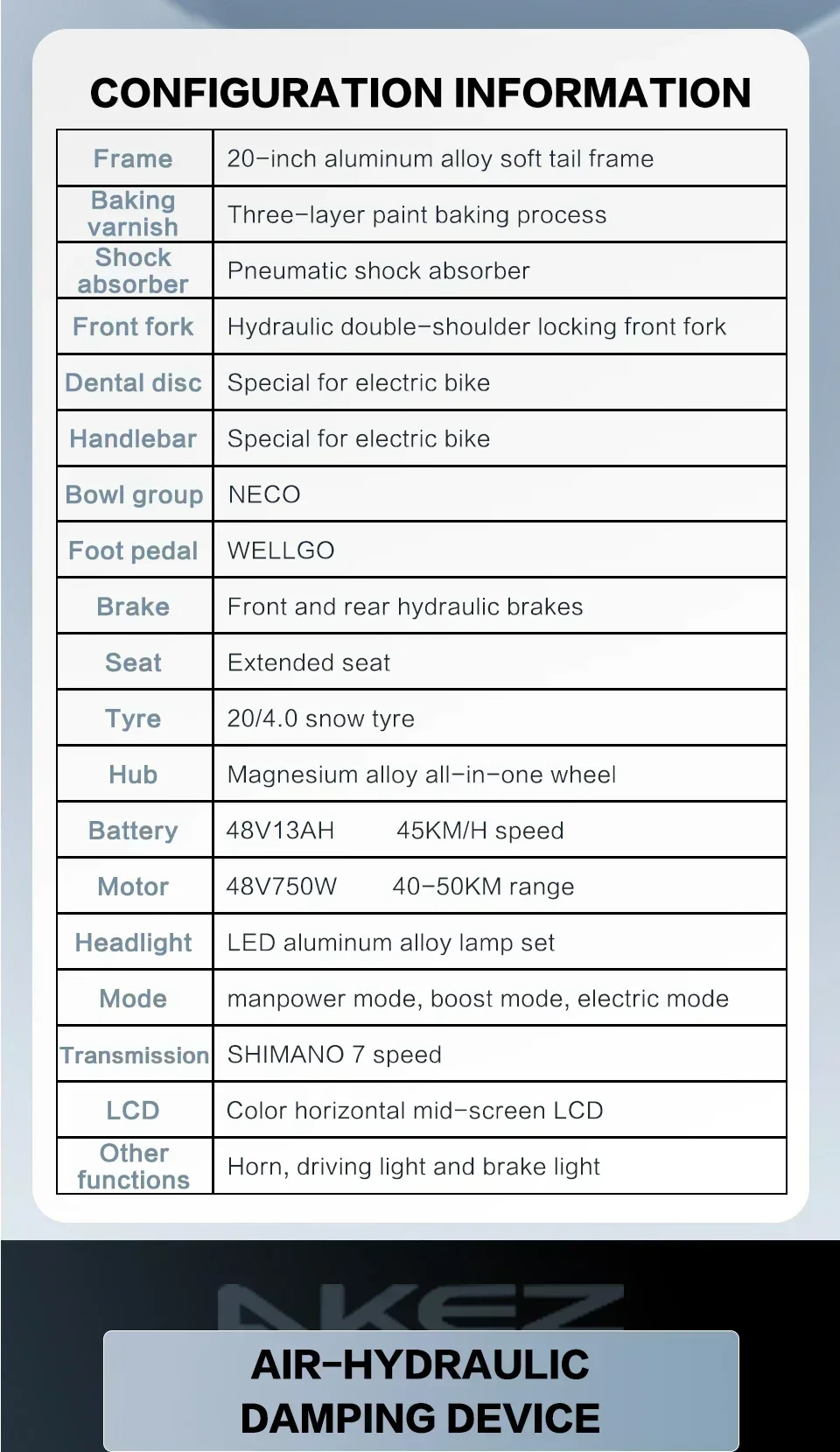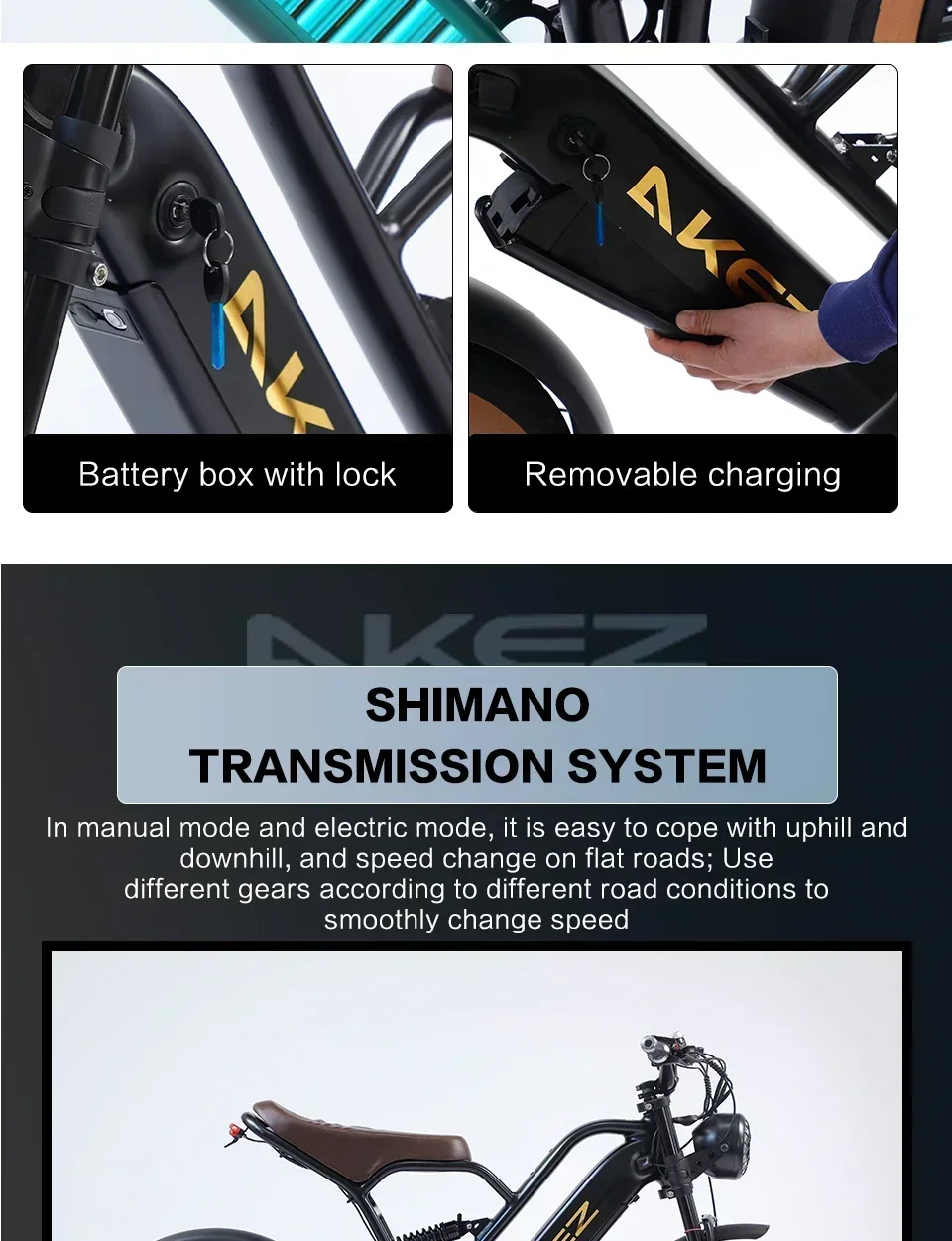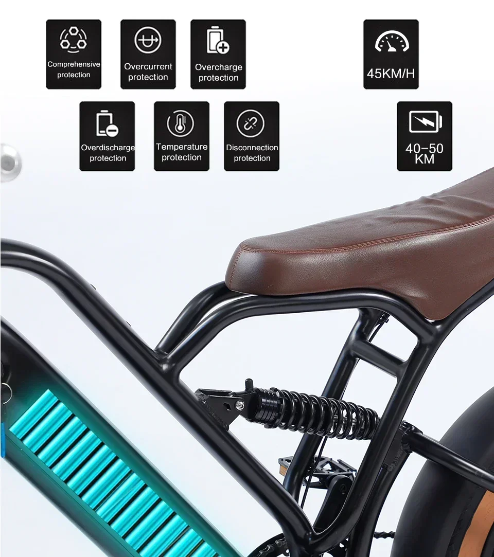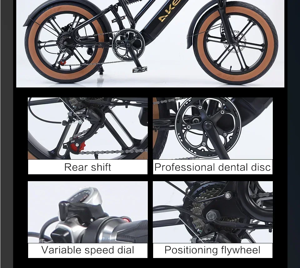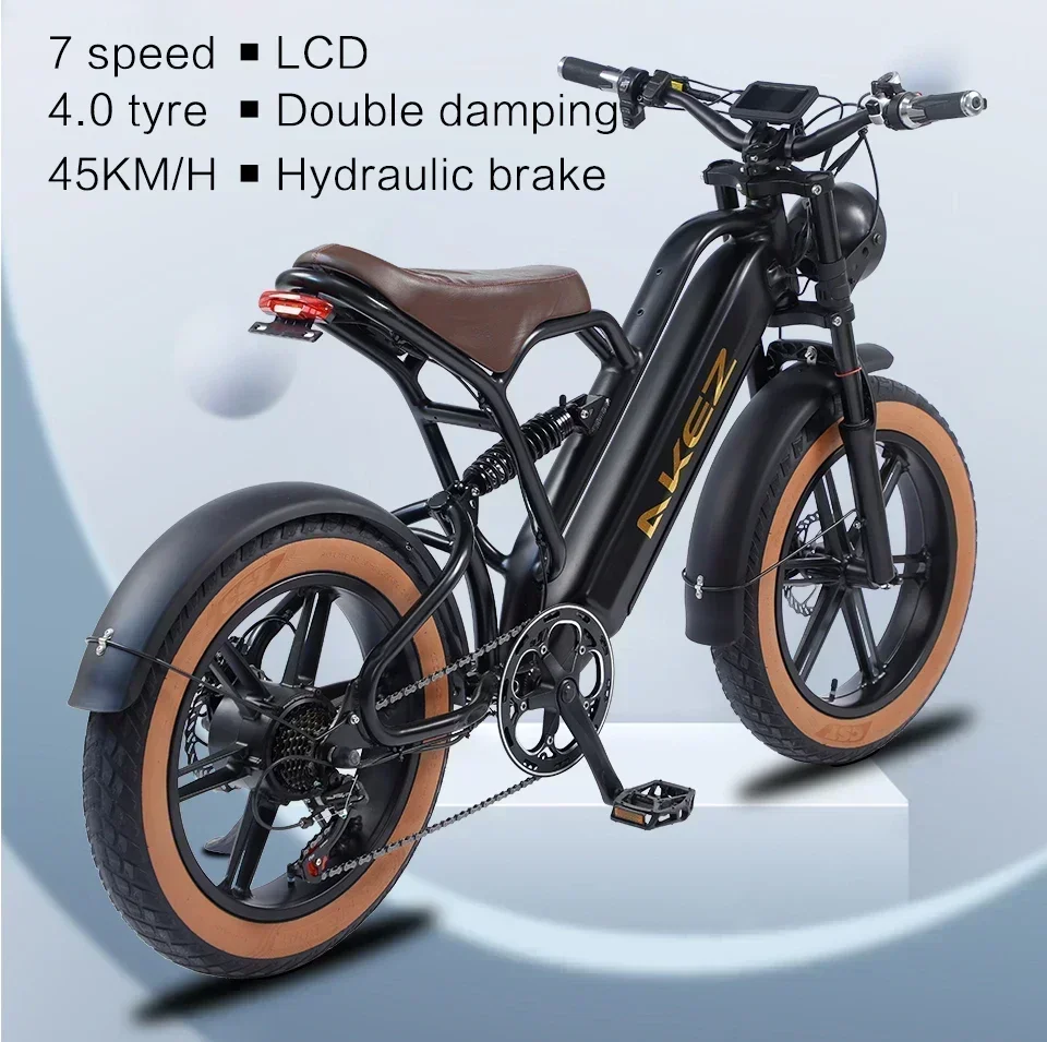 AKEZ Mountain Electric Bike750W Powerful motor 48V18AH Removable battery 20*4.0 inch Fat Tire Adult E-Bike Off-Road E-Bike