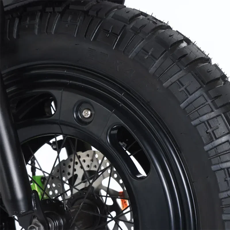 5. Front oil disc brake, rear oil disc brake. (green caliper)