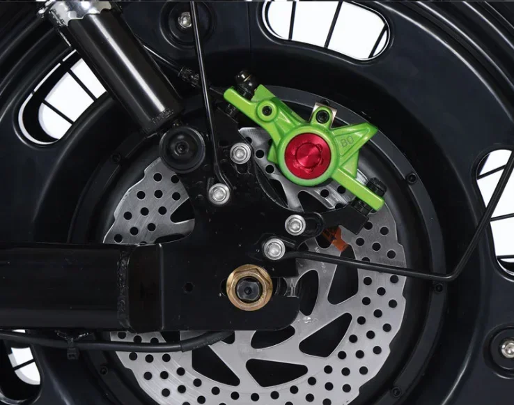 5. Front oil disc brake, rear oil disc brake. (green caliper)