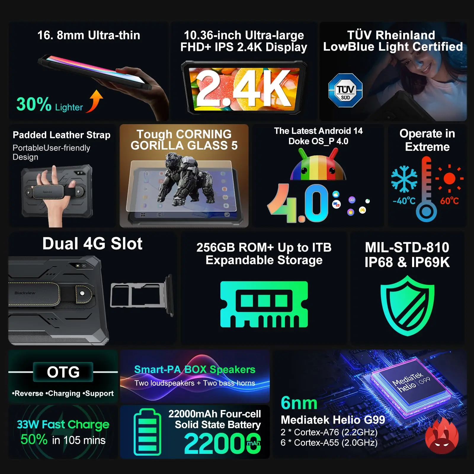See everything in stunning clarity with Active 8Pro’s 10.36-inch FHD+ display and 2.4K resolution.Whether you’re working, streaming, or gaming, you’ll appreciate the clarityand color accuracy of this top-of-the-line screen.