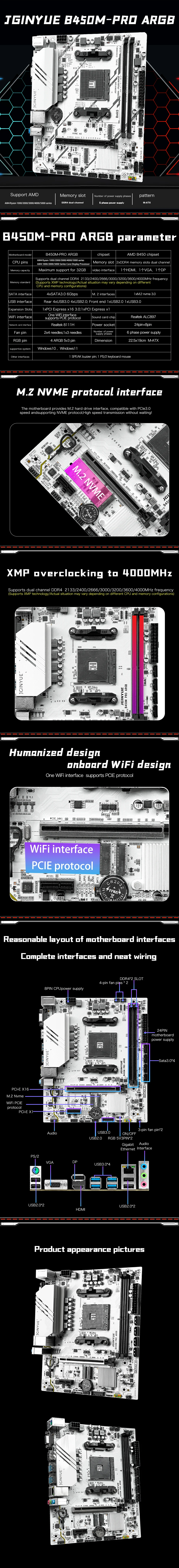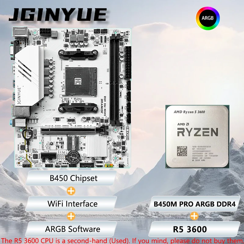 JGINYUE AMD® R5-3600 6C12T CPU B450M PRO ARGB Motherboard Kit PC desktop DDR4 MAX 32GB combo Bundle DIY Office home light gaming