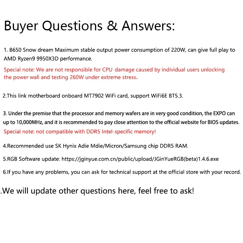 Be the first to review “JGINYUE B650M Snow Dream WiFi Motherboard M-ATX For Ryzen7000/8000/9000series MAX 9800X3D/9950X3D DDR5 RAM PCIe4.0x16*2 M.2*3”