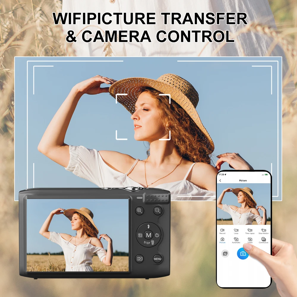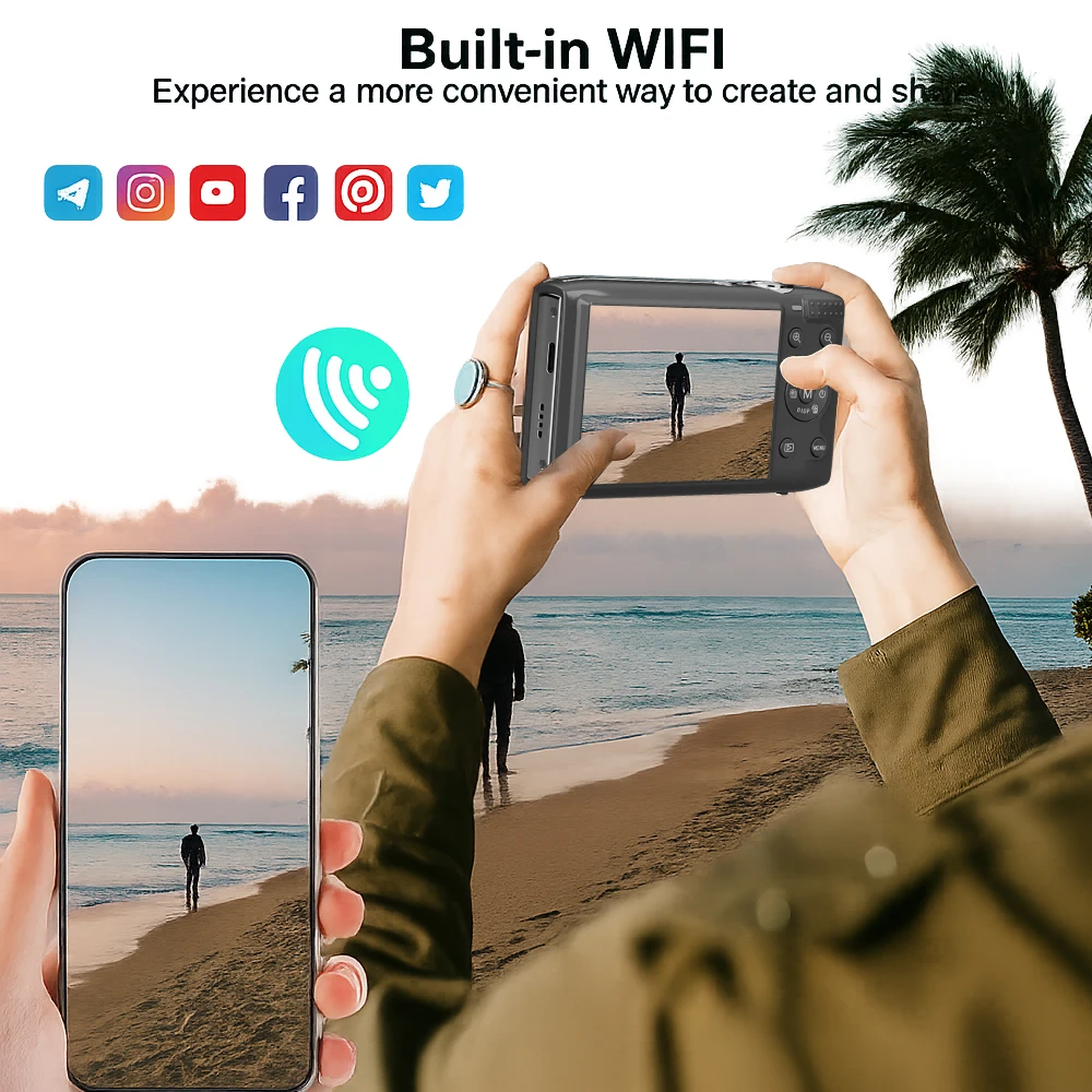 2.Wireless Connectivity & Creative Shooting: Featuring built-in Wi-Fi, simply scan to connect the vlogging camera to your phone for real-time preview, remote control shooting, or instantly share photos/videos on social platforms. The upgraded 13MP CMOS sensor supports 5K@15FPS video and 72MP high-res photos.