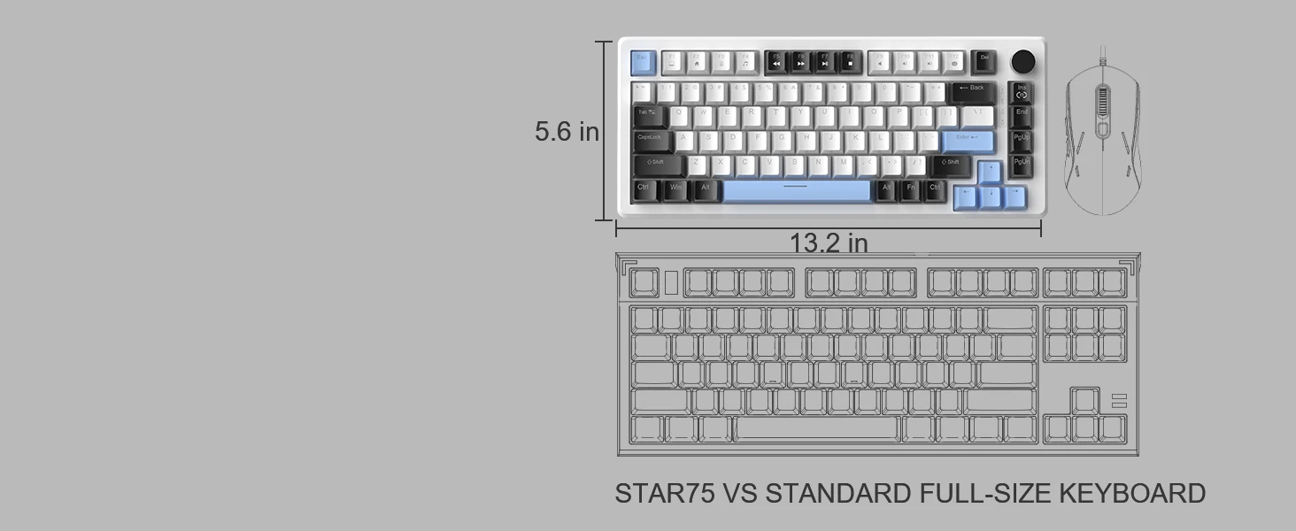 75% COMPACT MECHANICAL KEYBOARD: With a total of 83 keys, the STAR75 gaming keyboard retains separate arrow keys, making the desktop cleaner without sacrificing essential functionality. It can perform the commands of a full-size keyboard with more space for mouse movement. A great addition to the desktop for gamers and office users.