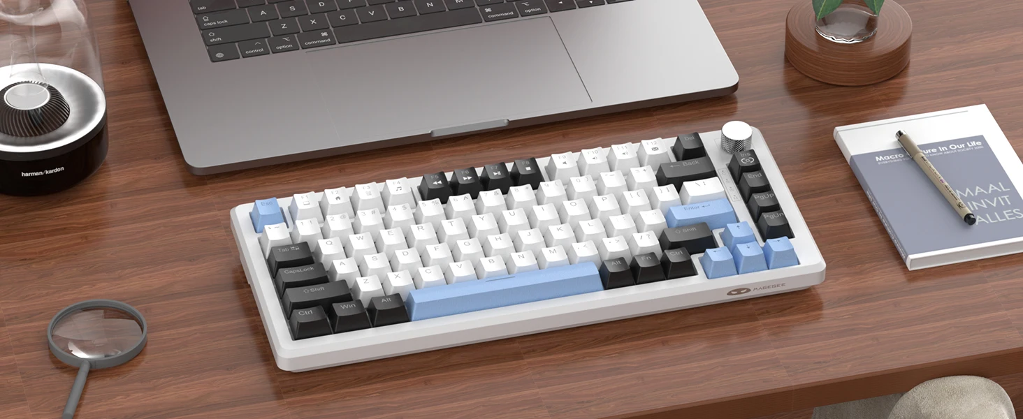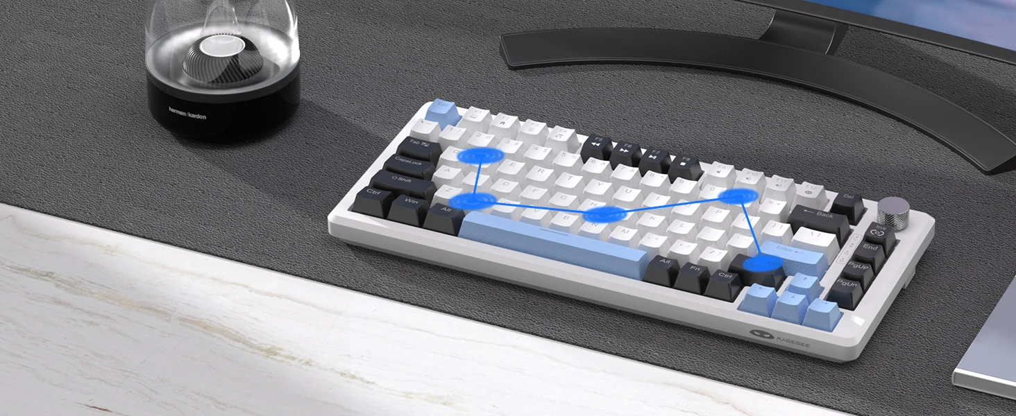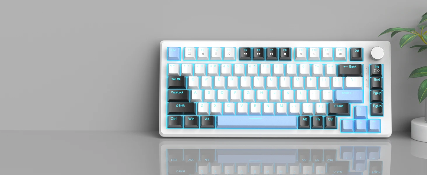 AMAZING LIGHTING EFFECTS: This 75% keyboard has ice blue backlighting, supports 18 lighting modes, 5 brightness levels, 4 speed levels, and can also be turned off or on with one click. Dynamic or static lighting modes are available, so you can choose the lighting effect that appeals to you as required.
