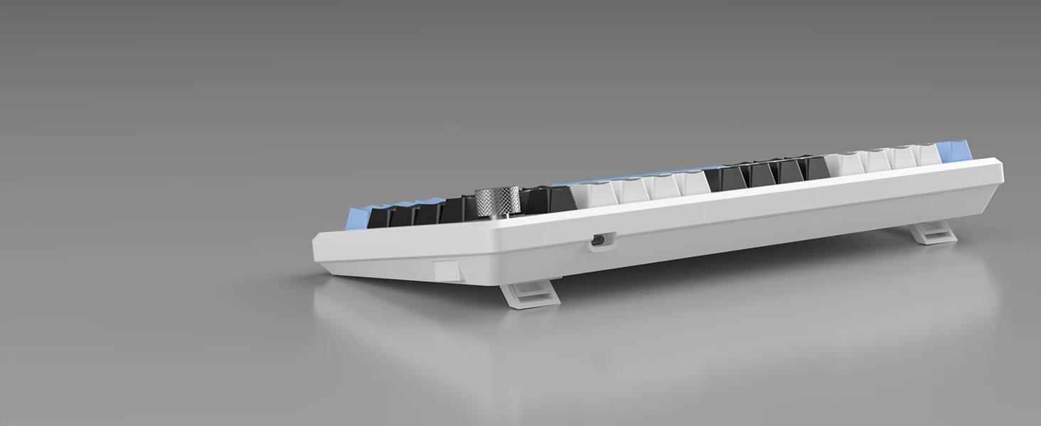 COMFORTABLE & ERGONOMIC DESIGN: The stepped keycaps and two-step legs provide a comfortable typing angle and reduce wrist stress. The keyboard has a double layer of sound deadening construction with an EVA interlayer foam and bottom foam to reduce noise from the keyboard’s internal cavities. The keycap color scheme is simple – black & white, with an additional 16 blue keycaps available for DIY.