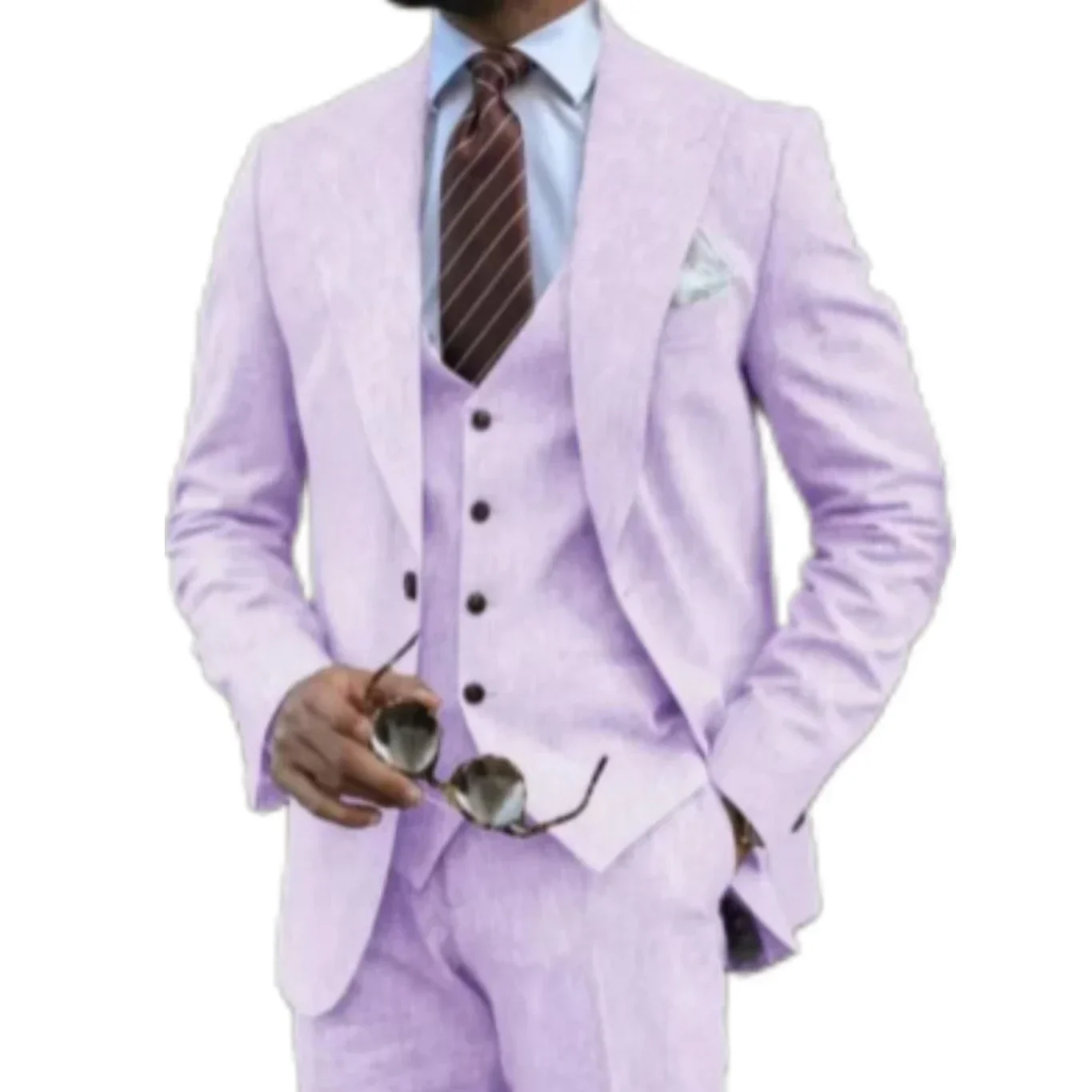 Men’s linen suit 3 pieces Blazer Vest And Pants set solid color formal business suits high end men’s clothing Summer beach
