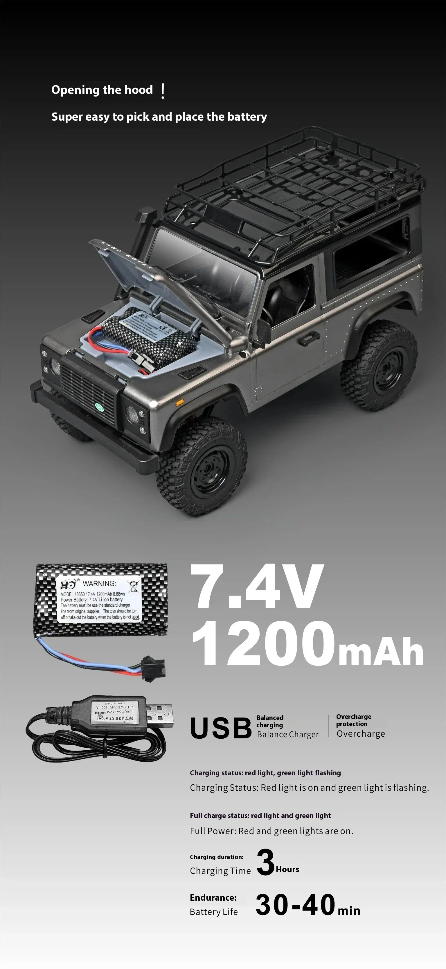 Battery: 7.4V 1200mAh