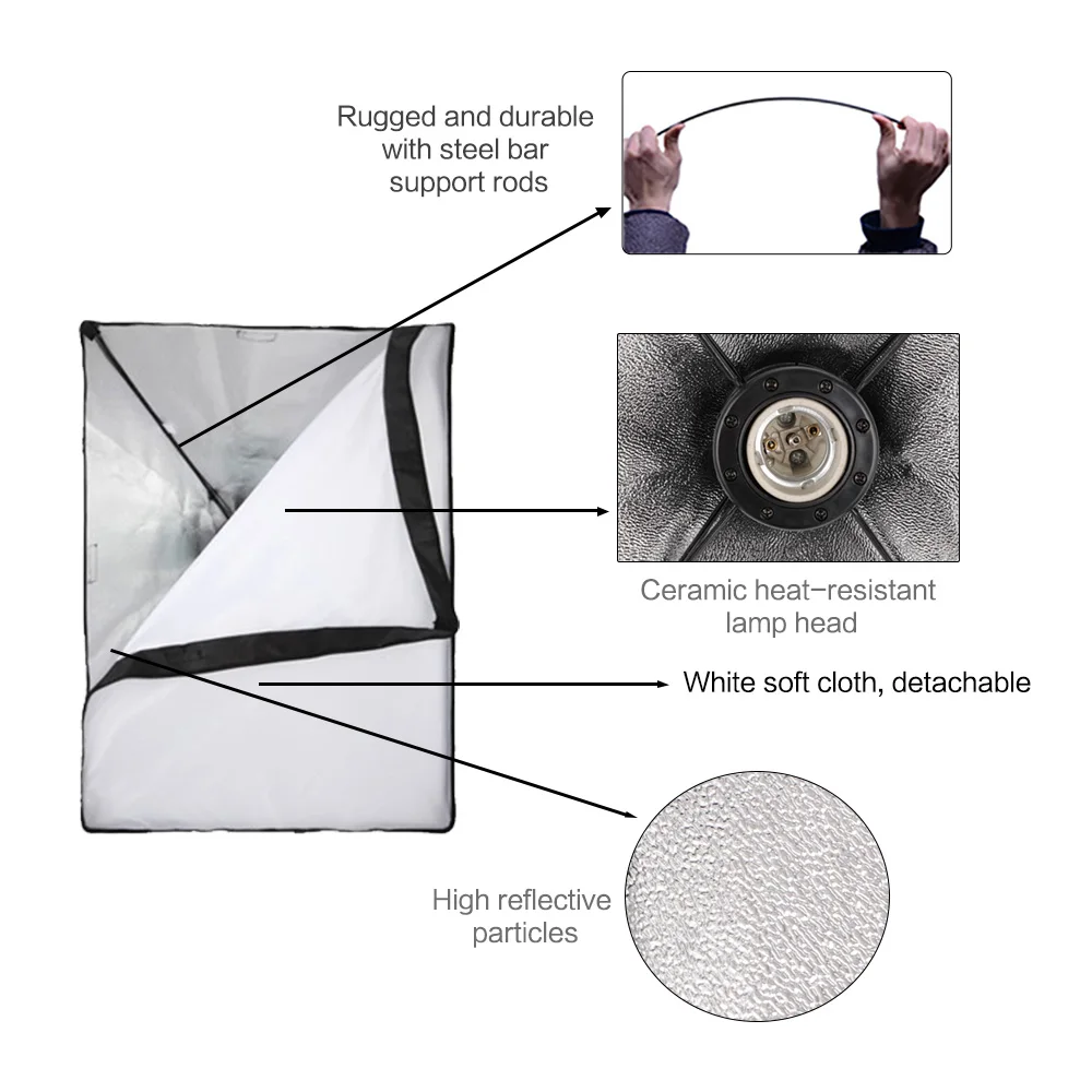 White foldable soft cloth,High quality reflective particle.Silver internal face to minimize light loss and maximize light spread.