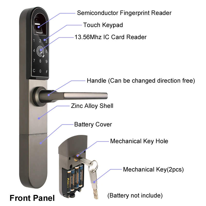 4.Support fingerprint,password,RFID card,mechanical key unlock,make your home smarter.