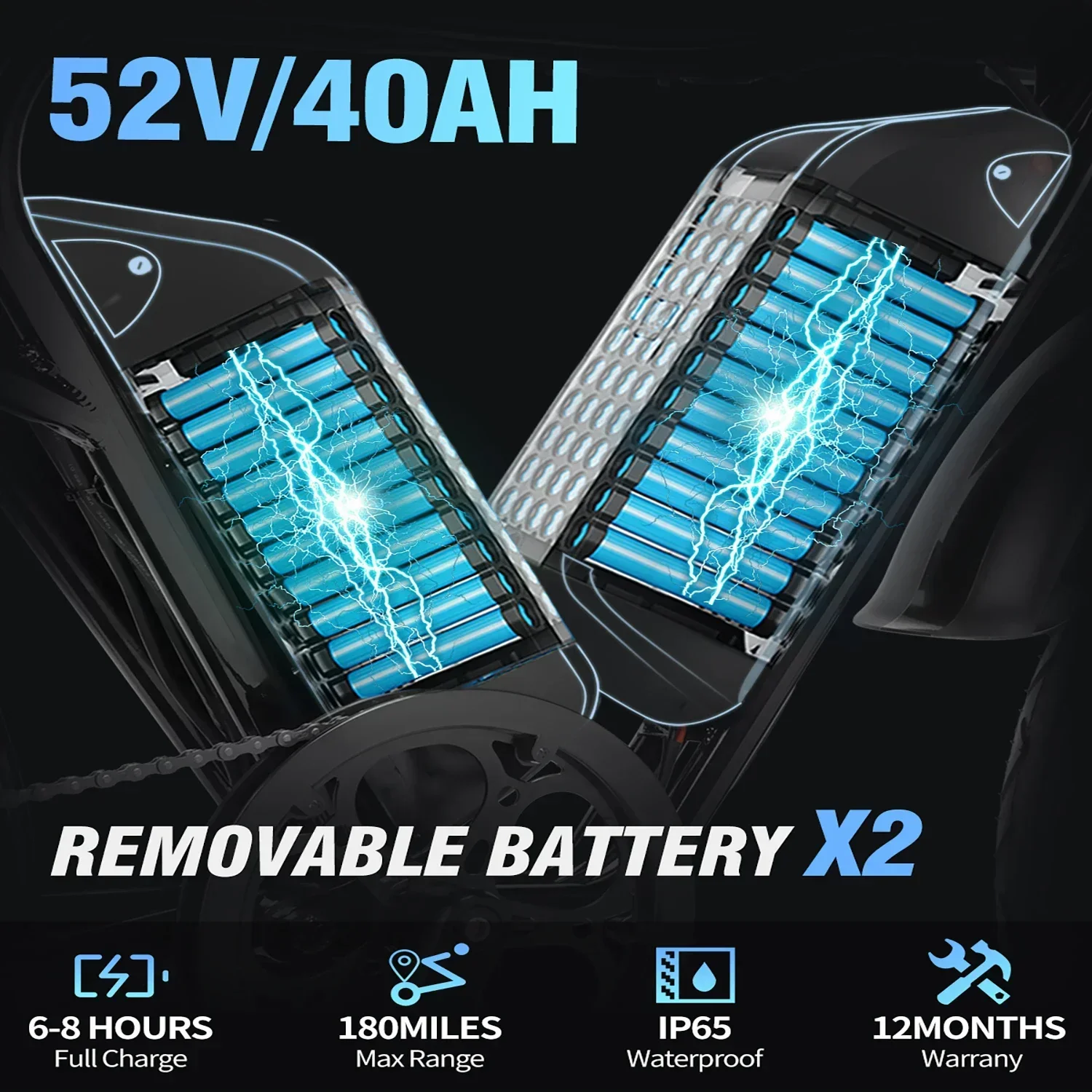 Battery: Dual battery, 52V 40AH