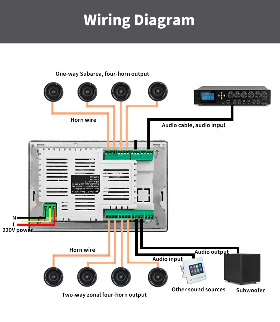 7inch 2 zone audio wall amplifier