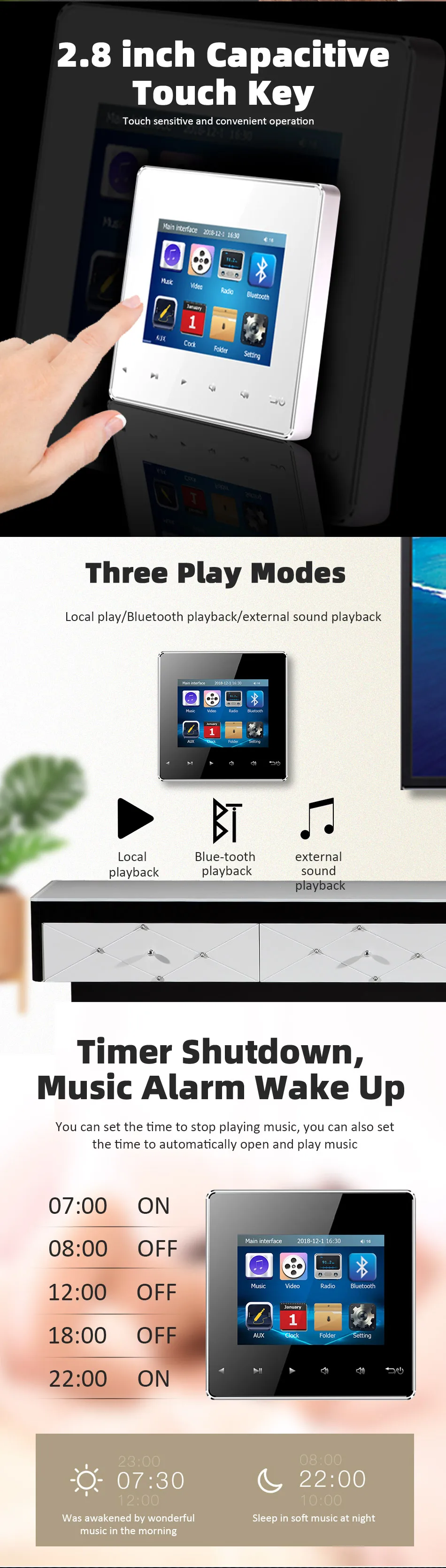 ● One way Bluetooth, the bluetooth of this device can only be connected to mobile phones/tablets and other bluetooth devices who’s Bluetooth function is two way to play and control the music, CAN NOT be connected to the bluetooth ceiling speakers or TV(one way bluetooth) by bluetooth directly.