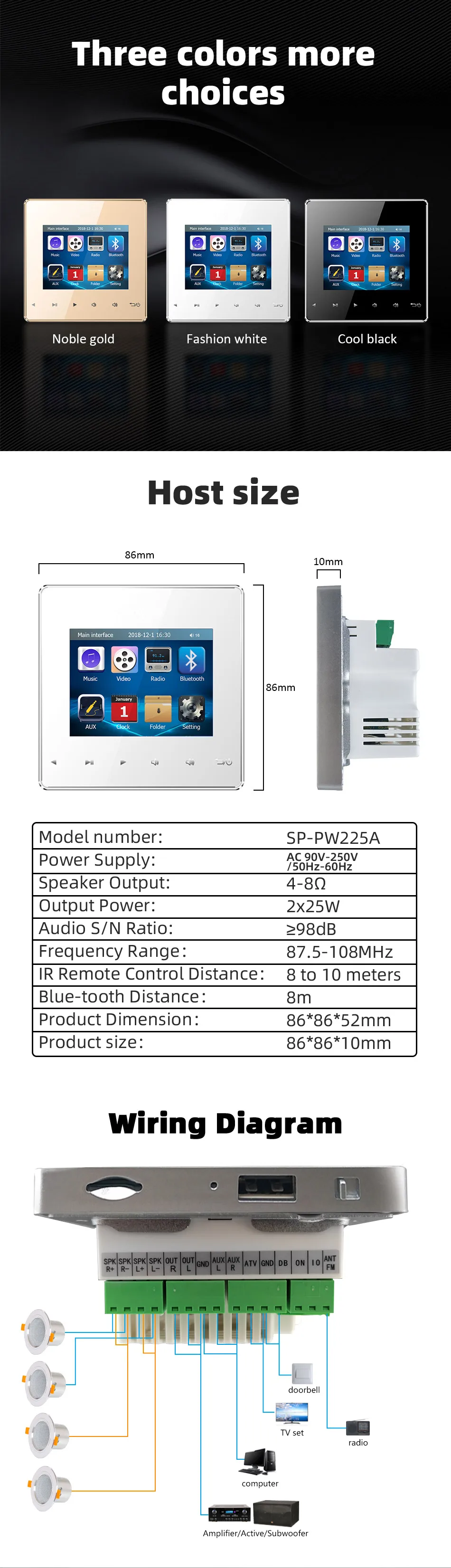 ● Output Power: 2*25W or 4*15W (Digital power amplifier)