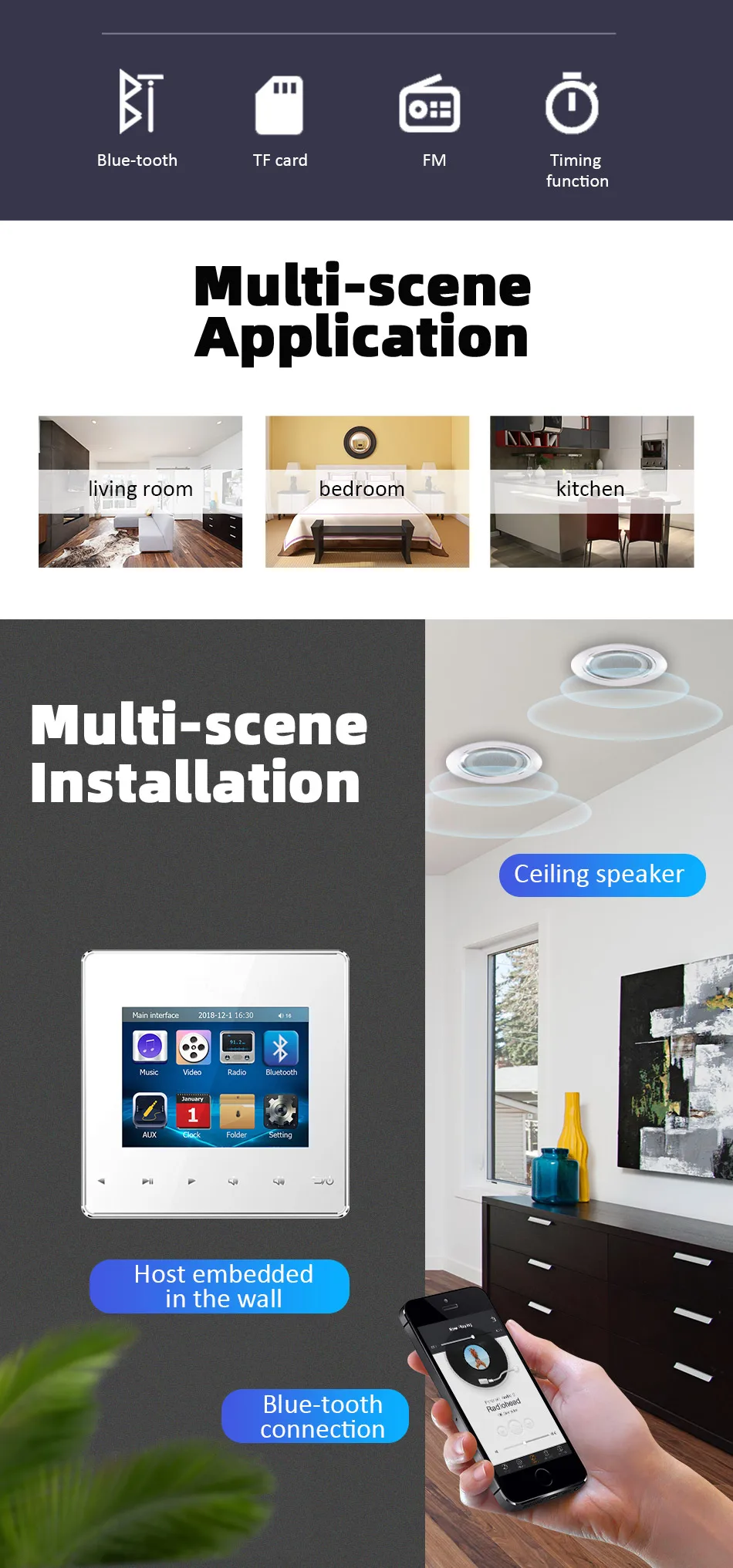 Smart Mini Bluetooth Wall Amplifier Home Theater Sound System with Stereo Ceiling Speaker Background Music for Hotel Residential