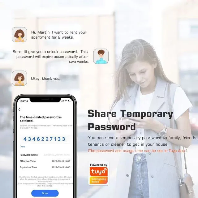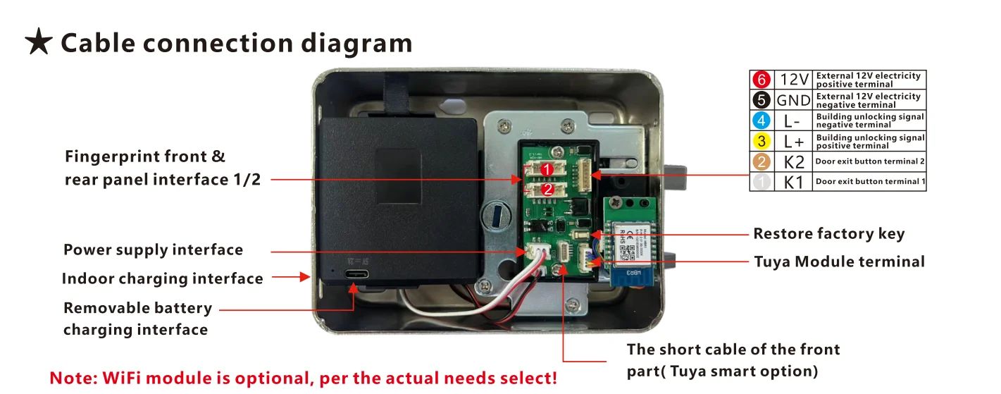 The smart lock supports WIFI connection and uses the Tuya App to manage the door lock