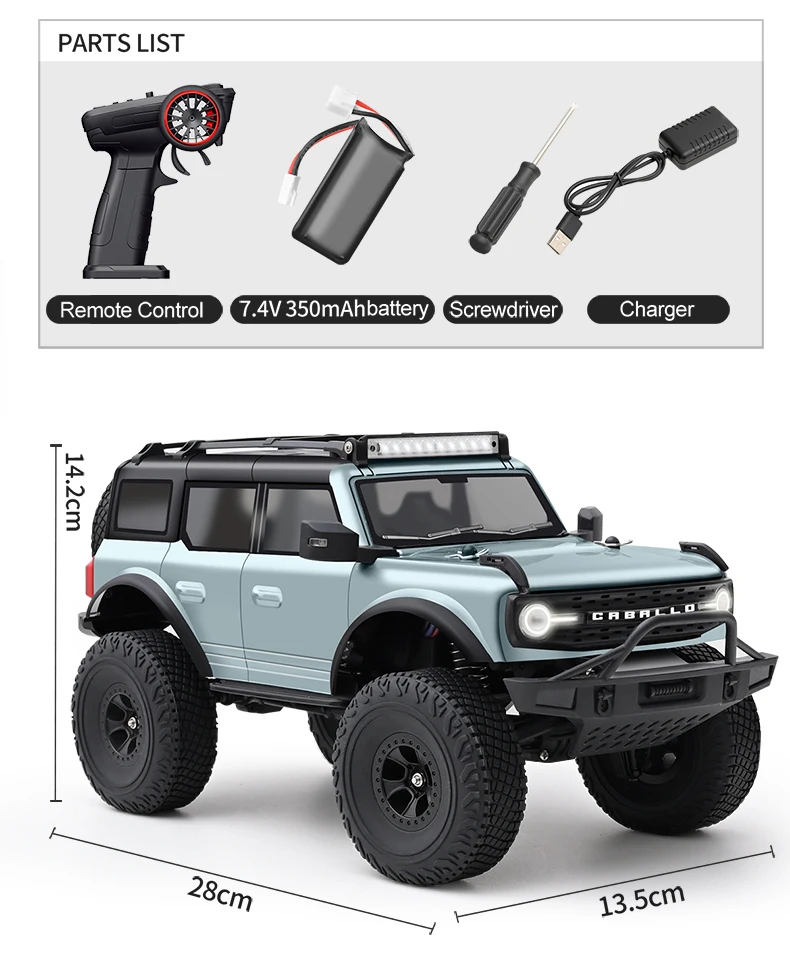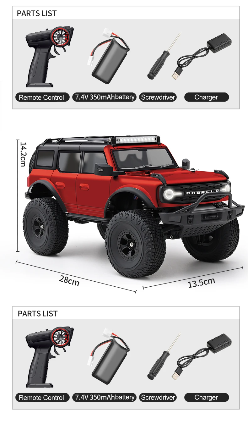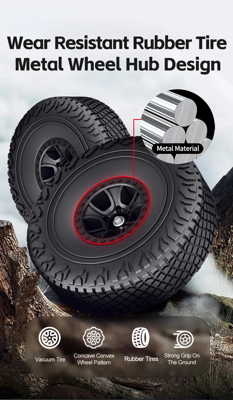 3. Door-bridge design, higher chassis space, better off-road capability, alloy wheels, rubber tires for better grip.