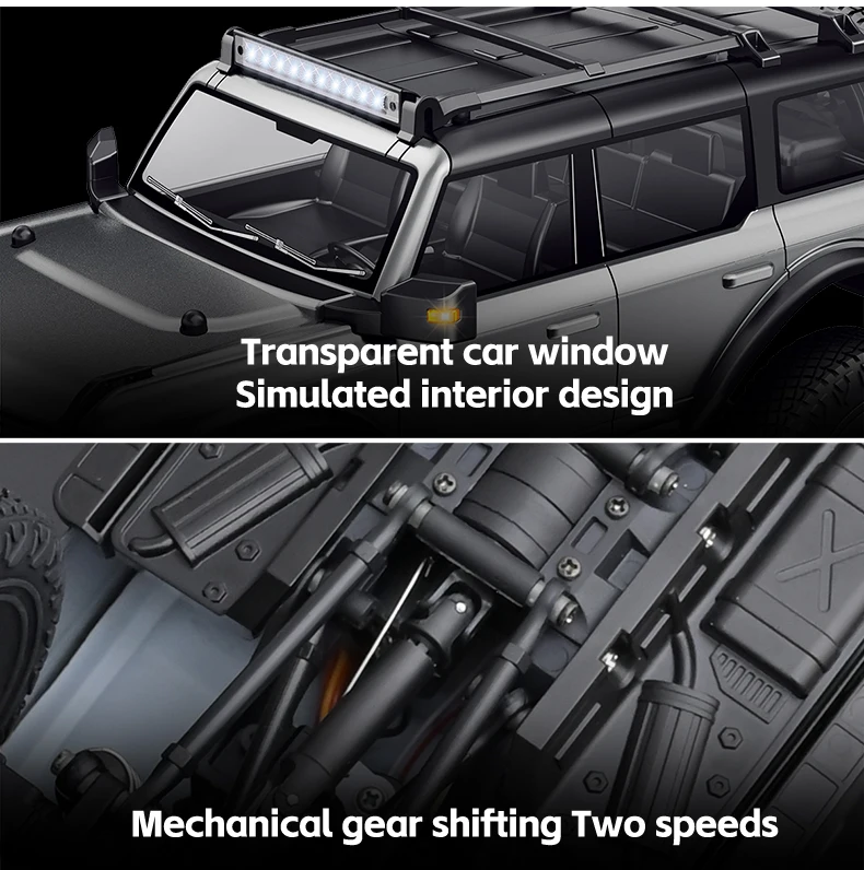 1. Forward, backward, left turn, right turn, gear switching, one-button lighting with full simulation structure design, lights are controllable.
